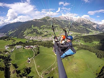 Im Skypool habe ich sie beobachtet, die bunten Gleitschirme am Himmel. Die Dolomiten aus der Adlerperspektive sehen – diesen Traum werde auch ich mir während meiner Zeit im Cendevaves erfüllen. Mit Start am Mont Sëura fliege ich lautlos und frei wie ein Vogel über Almwiesen und Wälder und lande ganz in der Nähe meines Urlaubszuhauses.