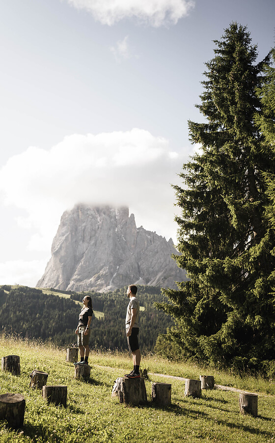 Rund um mein Hotel in St. Christina kreuze ich nur Wanderer, Skifahrer, Rehe und Eichhörnchen. Ich erlebe die Dolomiten aus erster Reihe: Keine Straße und keine Nachbarhäuser stören die Idylle.