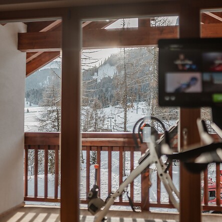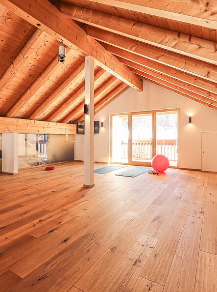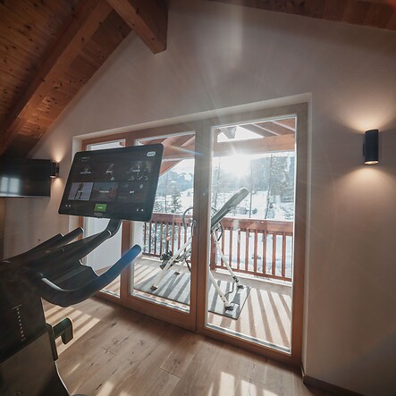 In den Fitnessraum gehe ich gern an einem Wellnesstag, um doch noch ein bisschen in Bewegung zu kommen, oder um die Muskeln nach einer herausfordernden Wanderung oder einem langen Tag auf der Piste zu lockern. Morgens ist es der perfekte Ort für eine Yoga- oder Meditationseinheit. Und sollte es einmal regnen, habe ich hier alles, was ich brauche, um sportlich aktiv zu bleiben.