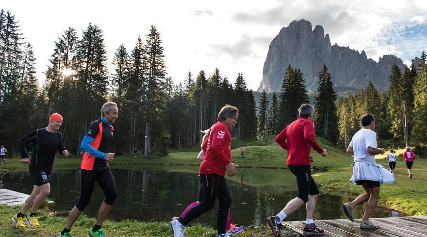 Running in the fresh mountain air and in front of magnificent mountain backdrops.
