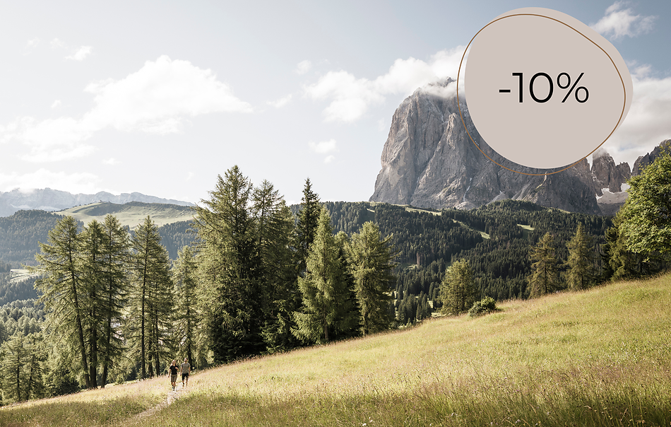If I book a stay of at least 7 nights between June 28 and July 12 I can enjoy a 10% discount on my holiday. I’m already dreaming about the enchanting summer scenery of the majestic Dolomites and the relaxing moments in my little paradise on Monte Pana.