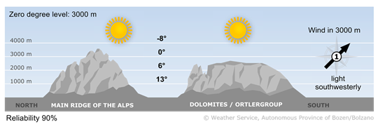 Spring-like temperatures with highs between 13°C in Vipiteno and 18°C in Bolzano.