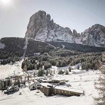 La sciovia dell'hotel si trova proprio di fronte al deposito sci, offrendo un accesso diretto all'intero comprensorio Dolomiti Superski.